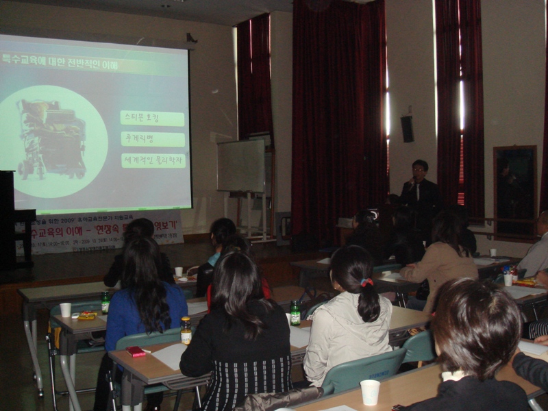 통합교육환경 지원을 위한 2009년 유아교육전문가 지원교육을 10월 17,24일 2주간 1,2차 실시하였습니다. '특수교육의 이해'라는 주제로 실시하여 영주지역의 어린이집 교사 총 31명이 참석하여 주셨습니다.