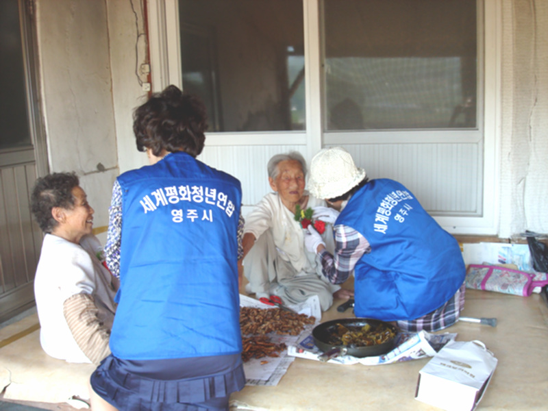 금년에는 세계평화청년연합 하망동지회(회장 이장호)에서 롤케익을 후원해주었으며, 소속 회원 7명이 함께 영주지역 어르신들의 가정 60곳을 일일이 방문하여 직접 카네이션을 달아드리고 준비한 케익을 전달하는 등 따뜻한 마음을 함께 나눌 수 있는 뜻깊은 행사가 되었다.