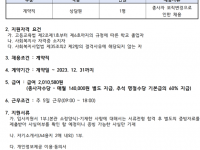 영주시장애인종합복지관에서는 장애인복지에 관심과 열정을 가진 직원(특수교사)를 아래와 같이 모집합니다. 1. 모집분야 및 인원 : 구분직종인원채용사유정규직특수교사1명퇴사인원으로 인한 신규채용 2. 지원자격 요건 가. 관련학과 졸업자(예정자), 관련 자격증 소지자 나. 교육 및 진단평가 가능자 다. 사회복지사업법 제35조의2 제2항의 결격사유에 해당되지 않는 자 3. 채용조건 : 정규직 4. 급여 : 경상북도 장애인지역사회재활시설 종사자 인건비 가이드라인 준수 (종사자수당 – 140,000원 별도 지급, 명절수당 – 기본급*60%) 5. 근무조건 : 주 5일 근무(09:00 ~ 18:00) 6. 지원서류 가. 입사지원서 1부.(본관 소정양식)-기재한 사항에 대해서는 서류전형 합격 후 별도의 증빙자료를 제출받아 사실여부를 확인 할 예정이니 증빙 가 능한 사실만 기재 나. 자기소개서(A4용지 2매 내외) 1부. 다. 개인정보제공 이용·동의서 ※ 지원서류에 학교명, 종교, 사진, 추천인, 주민등록번호 등의 정보를 기재하지 말 것 7. 전형방법: 1차 서류 심사 ▶ 2차 면접 시험(1차 서류전형 합격자에 한함) 8. 우대사항 가. 일정자격을 갖추고 업무수행이 가능한 등록장애인 가산점 부여 나. 영주시 거주 가능한 자 9. 채용일정: 채용공고 및 원서접수서류전형 합격자 발표면접시험최종합격자 발표23. 4. 24(월)~ 5. 9(화)홈페이지 별도 공지홈페이지 별도 공지홈페이지 별도 공지 * 자세한 사항은 채용 공고문을 확인해주세요.