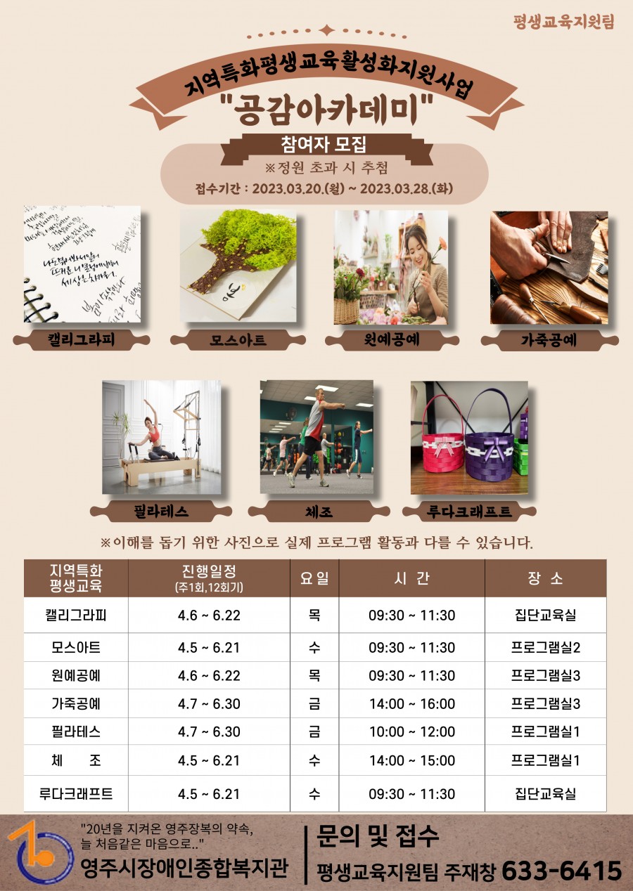 2023 지역특화 평생교육활성화지원사업 수강생을 모집하오니 많은 관심과 신청을 바랍니다.