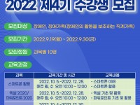 아래와 같이 2022년 제4기 정보화교실 수강생을 모집하고 있사오니 많은 관심과 참여를 부탁드립니다.