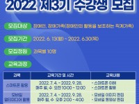 아래와 같이 2022년 제3기 정보화교실 수강생을 모집하고 있사오니 많은 관심과 참여를 부탁드립니다.
