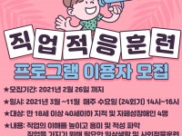 영장복 공고 21 – 03 영주시장애인종합복지관 장애인집합정보화교육 정보화교사 모집 공고 영주시장애인종합복지관에서는 장애인복지에 관심과 열정을 가진 장애인집합정보화교육 정보화교사를 아래와 같이 모집합니다. 1. 모집분야 및 인원 : 정보화교사 1명2. 자격조건 - 관련학과 졸업자(예정자), 관련 자격증(기사 이상) 소지자3. 채용조건 : 계약직4. 계약기간 : 2021. 03. 01 ~ 2021. 12. 31(2022년 장애인집합정보화사업 선정 시 계속 근무가능)5. 급여 : 월2,240,000원(3월~11월), 월1,830,000원(12월) / 종사자수당 월 140,000원 6. 근로조건 : 주5일 근무(09:00 ~ 18:00)7. 지원서류 가. 입사지원서1부.(본관 소정양식)-기재한 사항에 대해서는 서류전형 합격 후 별도의 증빙자료를 제출받아 사실여부를 확인 할 예정이니 증빙 가능한 사실만 기재 나. 자기소개서(A4용지 2매 내외) 1부. 다. 개인정보제공 이용·동의서8. 전형방법: 1차 서류 심사 ▶ 2차 면접 시험(1차 서류전형 합격자에 한함)9. 우대사항 가. 일정자격을 갖추고 업무수행이 가능한 등록장애인 가산점 부여 나. 영주시 거주 가능한 자 다. 컴퓨터 강사 유경험자 우대10. 채용일정: 채용공고 및 원서접수서류전형 합격자 발표면접시험최종합격자 발표21. 2. 3(수) ~ 2. 17(수)홈페이지 별도 공지홈페이지 별도 공지홈페이지 별도 공지11. 접수 및 문의: 우편 및 이메일(E-mail: yjrehab@yjrehab.or.kr) 가. 접수처: 경북 영주시 원당로 52번길 25 영주시장애인종합복지관 나. 문의: 운영지원팀장 손선미(☎ 054-633-6415)12. 기타 -. 제출된 서류내용이 누락되었거나 허위로 판명되었을 경우 응시대상에서 제외 할 수 있음. -. 최종합격자는 채용신체검사서 및 범죄경력증명서, 아동학대, 성범죄경력증명서를 제출하여야 함.(미제출시 채용 취소) 영 주 시 장 애 인 종 합 복 지 관 장