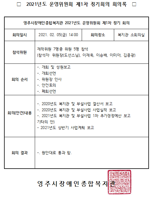 2021년도 운영위원회 제1차 정기회의 결과 공지