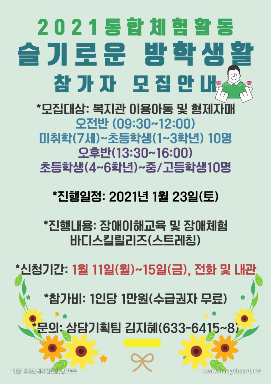 2021 통합체험활동 '슬기로운 방학생활' 참가자 모집 안내 > 공지사항