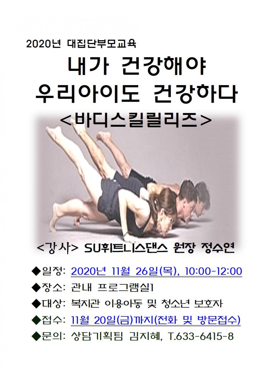 2020년 대집단부모교육 진행일정 및 참가자 모집 안내