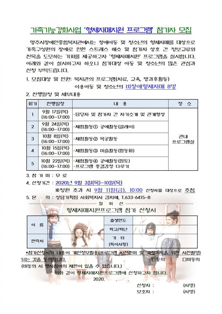 2020년 가족기능강화사업 '형제자매지원 프로그램' 참가자 모집 안내 페이지 정보 작성자 김지혜 작성일 20-09-03 09:43 조회6,240회 댓글0건 본문 . 이전글 다음글 목록