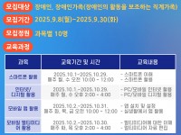 2025년도 정보화교실 4기 수강생을 모집합니다. 많은 관심 부탁드립니다. 모집기간 : 2025. 9. 8.(월) ~ 9. 30.(화)
