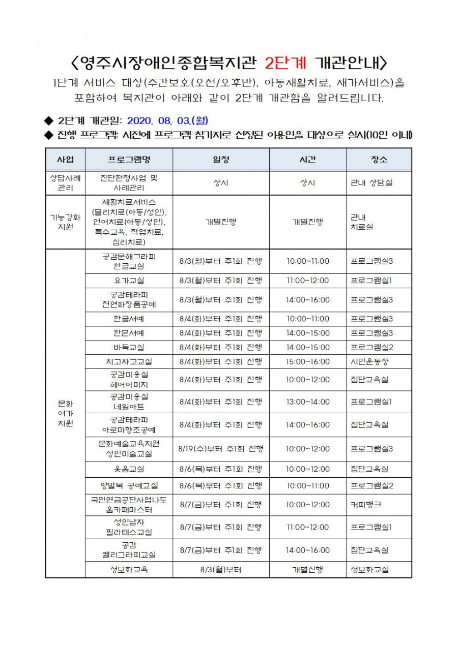 영주시장애인종합복지관 2단계 개관안내 > 공지사항