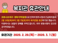 영장복 공고 20 – 02영주시장애인종합복지관 직원(사회복지사) 모집 공고 영주시장애인종합복지관에서는 장애인복지에 관심과 열정을 가진 직원(사회복지사)을 아래와 같이 모집합니다. 1. 모집분야 및 인원 : 사회복지사 1명2. 자격조건 - 관련학과 졸업자 중 사회복지사 1급 자격증 소지자 - 사회복지시설경력 신입 ~ 3년 이내3. 채용조건 : 정규직4. 급여 : 경상북도 장애인지역사회재활시설 종사자 인건비 가이드라인 준수 5. 근로조건 : 주5일 근무(09:00 ~ 18:00)6. 지원서류 가. 입사지원서1부.(본관 소정양식)-기재한 사항에 대해서는 서류전형 합격 후 별도의 증빙자료를 제출받아 사실여부를 확인 할 예정이니 증빙 가능한 사실만 기재 나. 자기소개서(A4용지 2매 내외) 1부. 다. 개인정보제공 이용·동의서※ 입사지원서, 자기소개서에 학교명, 종교, 사진, 추천인, 주민등록번호를 기재하지 말 것7. 전형방법: 1차 서류 심사 ▶ 2차 면접 시험(1차 서류전형 합격자에 한함)8. 우대사항 가. 일정자격을 갖추고 업무수행이 가능한 등록장애인 가산점 부여 나. 영주시 거주 가능한 자9. 채용일정: 채용공고 및 원서접수서류전형 합격자 발표면접시험최종합격자 발표02. 05(수) ~ 02. 19(수)홈페이지 별도 공지홈페이지 별도 공지홈페이지 별도 공지10. 접수 및 문의: 우편 및 이메일(E-mail: yjrehab@yjrehab.or.kr) 가. 접수처: 경북 영주시 원당로 52번길 25 영주시장애인종합복지관 나. 문의: 운영지원부장 이승배(☎ 054-633-6415)11. 기타 -. 제출된 서류내용이 누락되었거나 허위로 판명되었을 경우 응시대상에서 제외 할 수 있음. -. 최종합격자는 채용신체검사서 및 범죄경력증명서, 아동학대범죄경력증명서를 제출하여야 함.(미제출시 채용 취소 됨.)