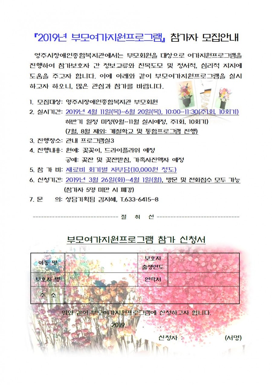 2019년 부모여가지원 프로그램 참가자 모집 안내