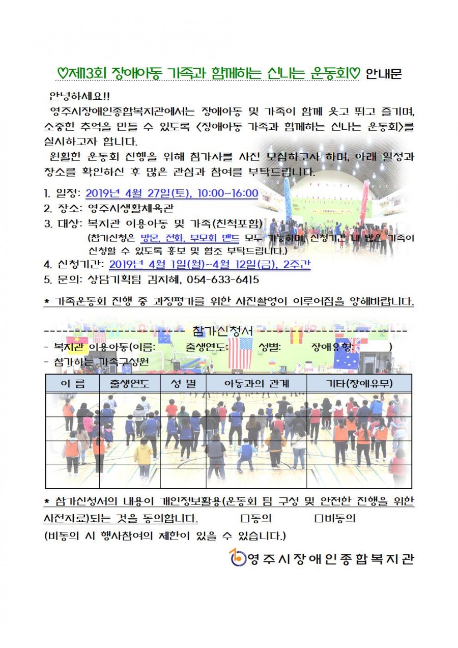 제13회 장애아동 가족과 함께하는 신나는 운동회 참가안내
