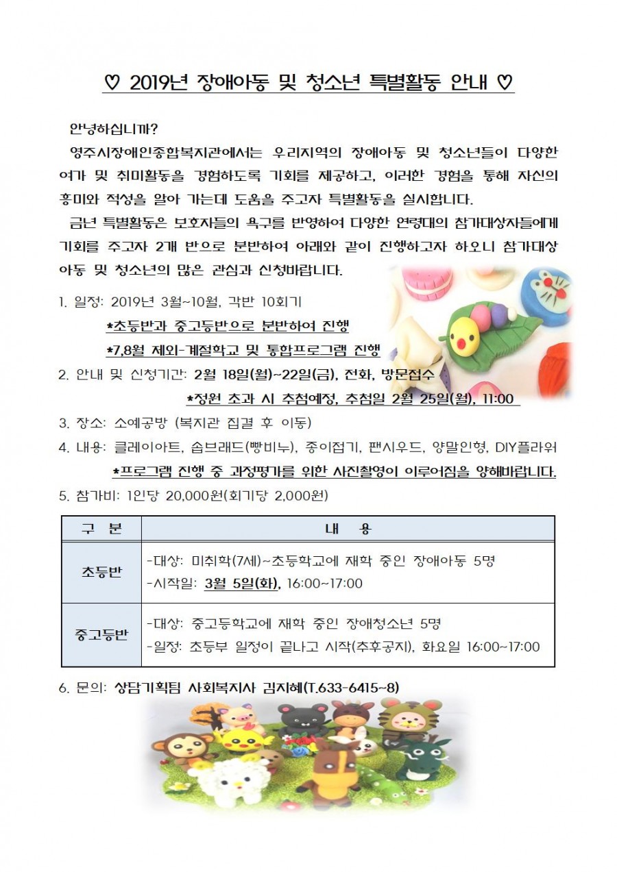 2019년 장애아동 및 청소년 특별활동 참가자 모집 안내