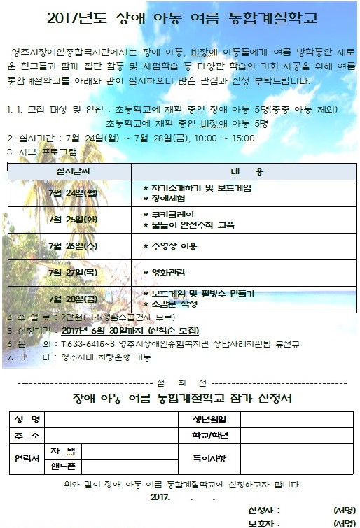 2017년도 여름 통합계절학교 안내입니다~