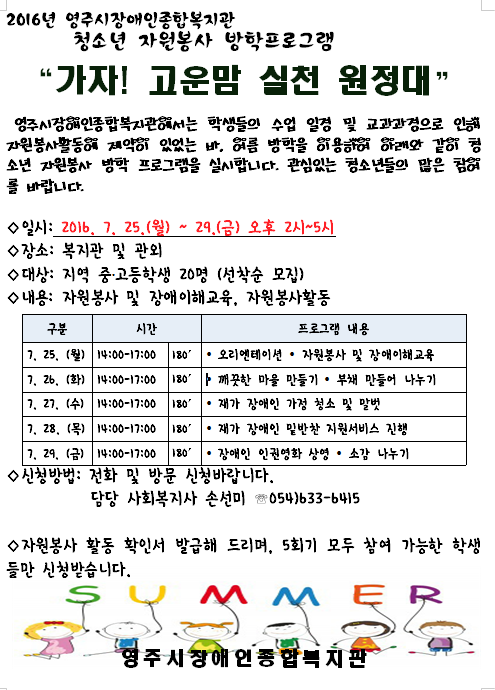 청소년 자원봉사 방학프로그램 "가자! 고운맘 실천 원정대"