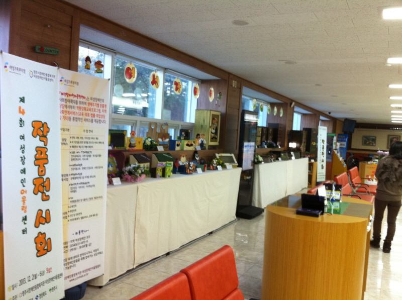 제5회 여성장애인어울림센터 작품전시회 개최 페이지 정보 작성자 이승희 작성일 14-11-17 10:31 조회5,646회 댓글0건 본문 여성장애인어울림센터에서는 2014년도 역량강화교육프로그램 중 한지공예교육과 지적장애여성 목공공예교육에 참가한 이용자들이 제작한 공예작품을 가지고 아래와 같이 전시회를 개최하오니, 지역주민들의 많은 관심과 관람을 부탁드립니다.일시: 11월 24일 월요일~28일 금요일(5일간)장소: 영주시청 민원실 전시관(1층)전시작품내용: 한지공예작품 27점, 톨페인팅 작품 10여점, 넵킨아트 작품10여점 이전글 다음글 목록