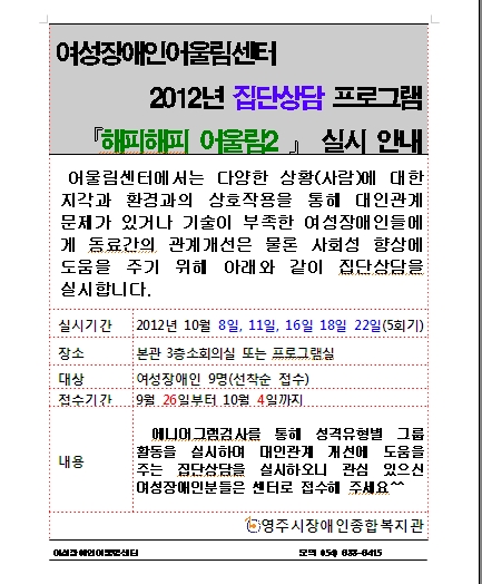 어울림센터 집단상담프로그램"해피해피 어울림2" > 공지사항