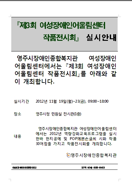 제3회 여성장애인어울림센터 작품전시회 개최 > 공지사항