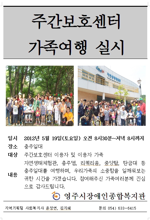 경상북도 영주시 원당로 52번길 25 영주시장애인종합복지관대표번호 : 054-633-6415~8 팩스: 054-633-6419이메일: yjrehab@yjrehab.or.kr