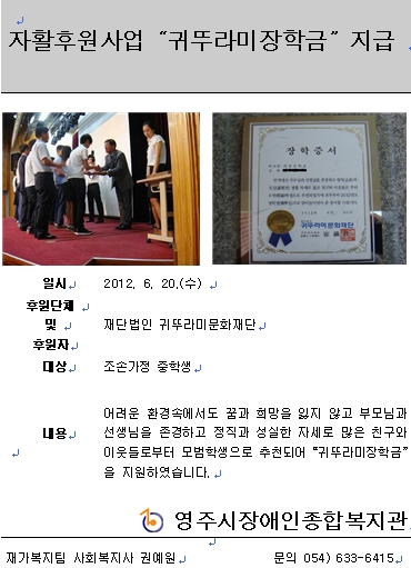 "귀뚜라미장학금" 지급 건