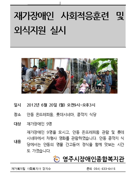 재가장애인 6월 사회적응 및 외식지원 실시 > 공지사항