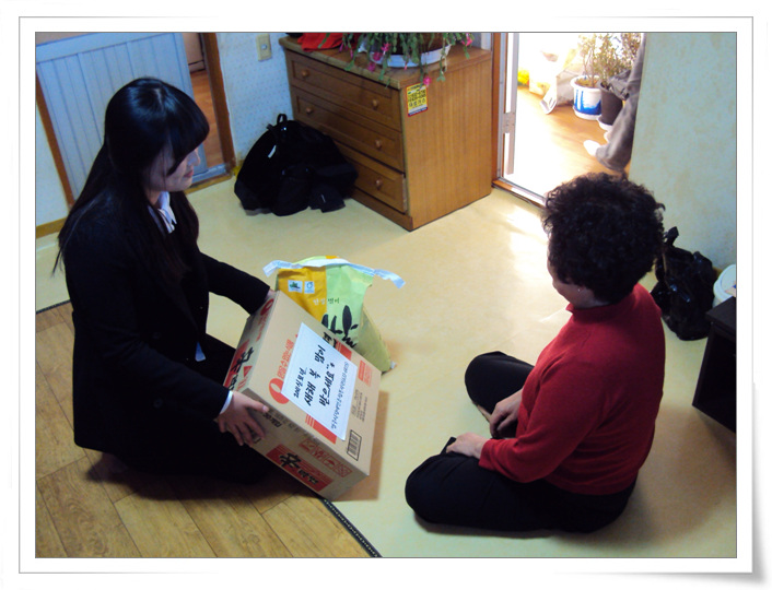 -.내용: 본 복지관에서 관리하고 경제적인 어려움과 소외되고 있는 재가장애인을 선정하여 후원받은 물품과 복지관에서 구매한 물품을 담당자와 봉사자가 함께 방문하여 전달