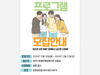 2026년 문화공유팀 프로그램에 관심을 갖고, 신청해주신 모든 분들께 감사드립니다.정원을 초과한 프로그램의 경우 1월6일(목)에 추첨을 진행하였습니다(네이버 밴드 참조).그 결과 신청하신 분들이 참여하실 수 있는 프로그램 목록을 아래와 같이 알려드립니다. 빨간색으로 적힌 프로그램은 대기상태를 의미합니다.성명은 가나다 순이며, 생년월일과 휴대폰 뒷자리를 확인하시면 됩니다. 그럼에도 불구하고 프로그램 참여 여부 확인이 어려우신경우 복지관(054-633-6415~8)으로 연락하여 프로그램 담당자들에게 확인 바랍니다.문화공유팀 담당자: 이석희, 손지영, 이상훈
