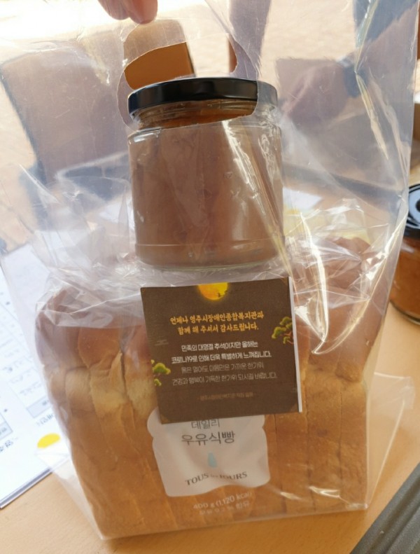 우리나라 고유명절인 추석을 맞이하여 복지관에서는 식빵과 우리 지역 사과로 만든 수제 잼을 나누어드리며