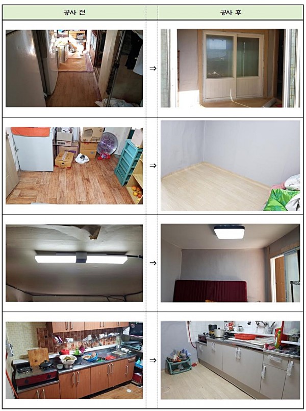 집수리로는 오래되고 열악한 환경으로 어려움을 겪고 있는 재가 장애인을 선정하였으며, 내용으로는 단열공사, 창호 및 싱크대 교체, 도배장판교체, LED전등설치, 천정 보수, 기타 등으로 공사가 진행되었습니다. 집수리 완료 이후 대상자는 겨울이면 항상 추워 이불을 덮고 있거나 두꺼운 옷을 입고 생활을 해야했지만 지금은 땀이 날 정도로 집안이 따뜻하고 훈훈하다며 매우 만족하였습니다. 그리고 노벨리스코리아 봉사대에 감사의 인사를 전했습니다.