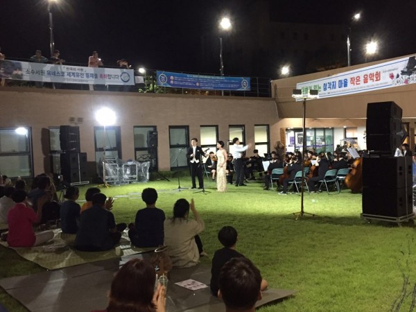 이번 문화가 있는 삼각지마을 ‘작은 음악회’는 김윤회님의 진행 및 통기타 공연과 함께 마하키즈합창단의 합창과 이유준 지휘자가 이끄는 중앙연합학생오케스트라의 ‘베토벤 교향곡’과 ‘헝가리댄스곡’ 이어 허희숙 단장이 이끄는 경기검무(안정화, 박시연)와 테너 이광호님과 소프라노 이숙현님의 ‘축배의 노래’, 이영희님의 흥겨운 트로트까지 다채로운 공연으로 지역주민들의 높은 호응을 받았습니다.
