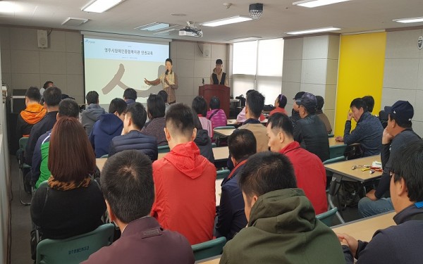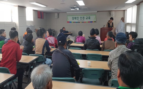 2018년 10월 25일(목) 10시에 복지관 이용 및 지역장애인을 대상으로 두울천사들의 집 김상직, 위재성 강사님의 강의로 장애인 인권교육 '장애인 인권 차이와 자기결정권'을 실시하였습니다. 이날 총 37명의 장애인분들이 참여하였고, 장애인 인권에 대한 올바른 지식과 가치관을 가지는데 많은 도움이 되었던 시간이였습니다.