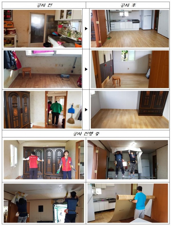 - 내용: 낡고 오래되어 청결하지 못한 도배와 장판을 교체하였음.