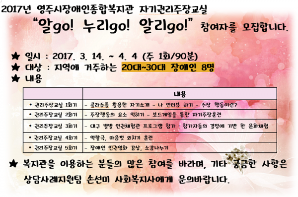 2017 자기권리주장교실 "알go! 누리go!, 알리go!" 실시