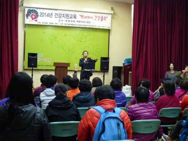 여성장애인어울림센터에서는 백현우 외과 원장님을 모시고, "백세까지 건강홀릭"건강지원교육을 실시하여 치매와 중풍 사전예방방법과 관리에 대해 알아보는 시간을 가졌습니다. 본 교육에 참가해 주신 여성장애인 38분들께 감사드립니다.