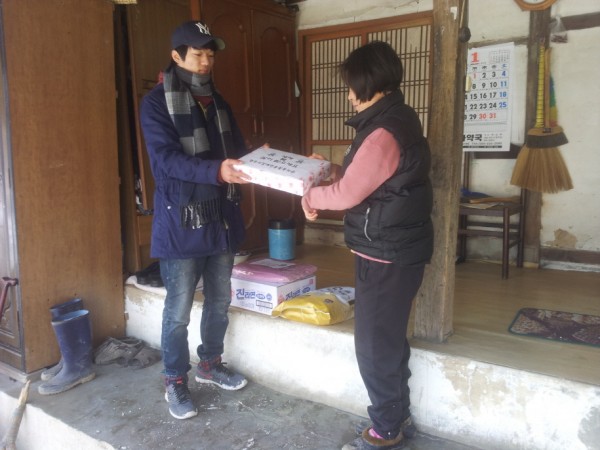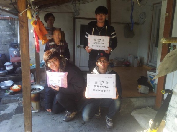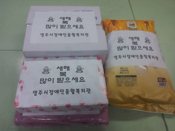 후원단체 및 물품: 영주시장애인종합복지관(쌀10kg, 라면1박스), 영주시보건소 정나눔회(성인용 내의), KT&G상상펀드기금운영위원회(무릎담요)