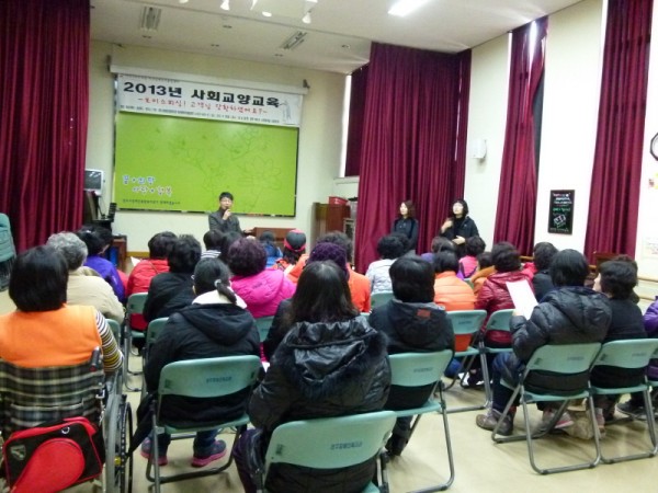 11월18일 오후2시 본관 강당에서 39명의 여성장애인들을 모시고, 보이스피싱(전화금융사기)에 대한 예방 및 대처방법을 알아보기 위해 "보이스피싱! 고객님 당황하셨어요" 사회교양교육을 실시하였습니다.