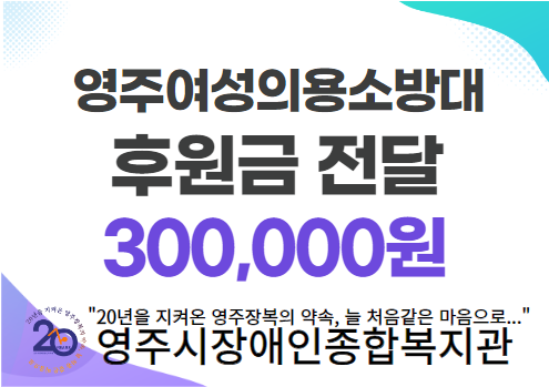 영주시장애인종합복지관은 지역이웃의 어려움을 잊지 않고 물심양면 도움을 주는 영주여성의용소방대측에 깊은 감사의 인사를 전하였습니다.