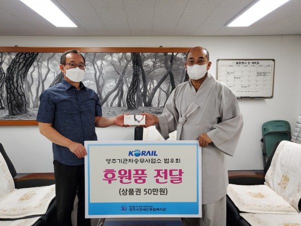 7월 26일(화), 11시, 코레일 영주기관차승무사업소 법우회(회장 김상겸)가 영주시장애인종합복지관에 후원품(온누리상품권)을 전달해주셨습니다.