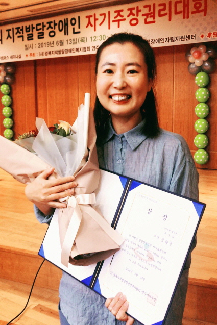 우리 복지관 이용자 <김현정>님이 제6회 영주시발달장애인자기권리주장대회 언어표현영역 일반부에 참여하여 우수상을 수상하였습니다.