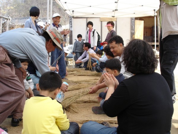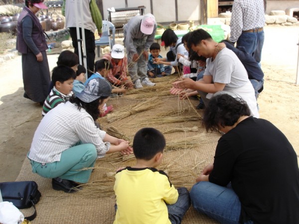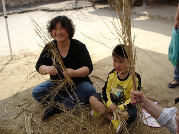 ***짚풀공예 하는 모습입니다...지금 문어인형 만들고 있어요~!