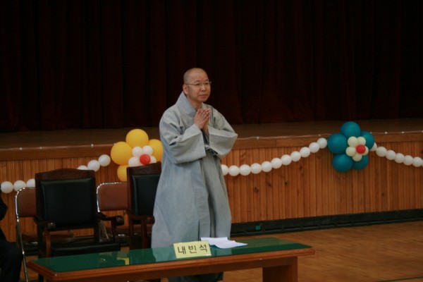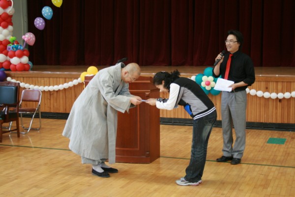 2. 부모회 회장 김은숙님께서 관장님이신 도륜스님께 후원금을 전달하고 있는 모습입니다.