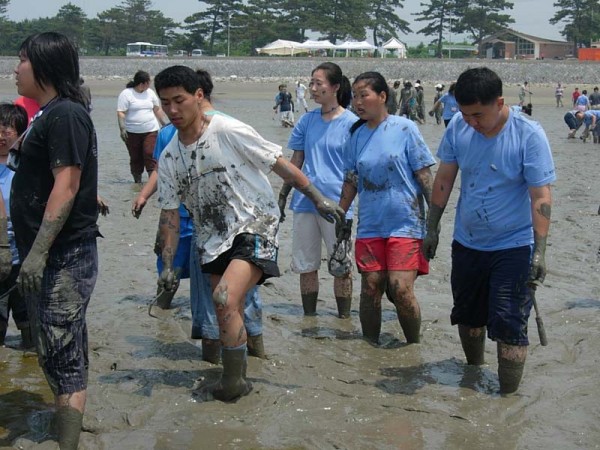 영광 해수욕장의 물이 점점 빠지더니 갯벌이 나타났습니다.