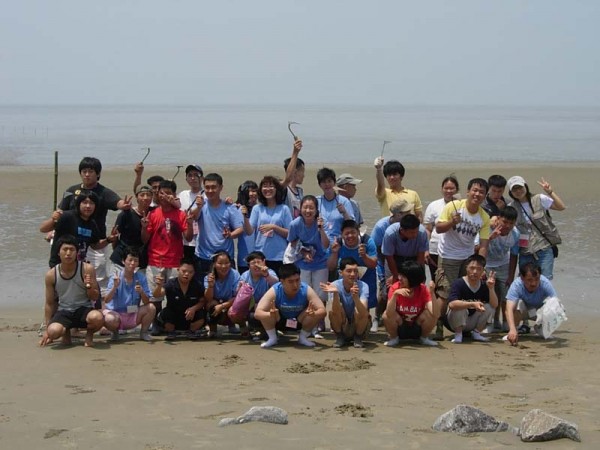 영광 해수욕장의 물이 점점 빠지더니 갯벌이 나타났습니다.