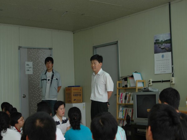 (주)선일일렉의 차장님의 인사말이 있었습니다. 복지관의 훈련생들과 지역 업체들이 서로